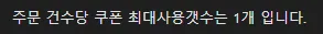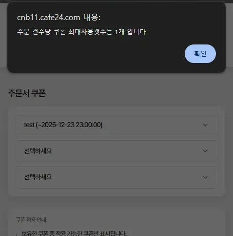 주문당 쿠폰을 1개만 사용할 수 있도록 할 경우
