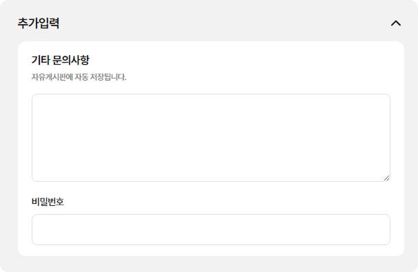 기타 문의사항 게시판 ‘사용함’ 일 경우, 결제페이지에 보이는 문의게시판.