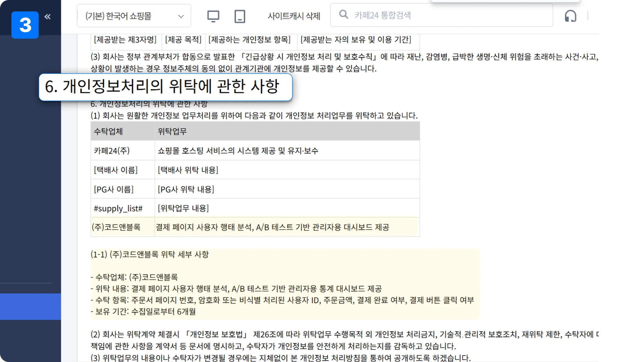 다음, 개인정보처리의 위탁에 관한 사항 항목을 찾아