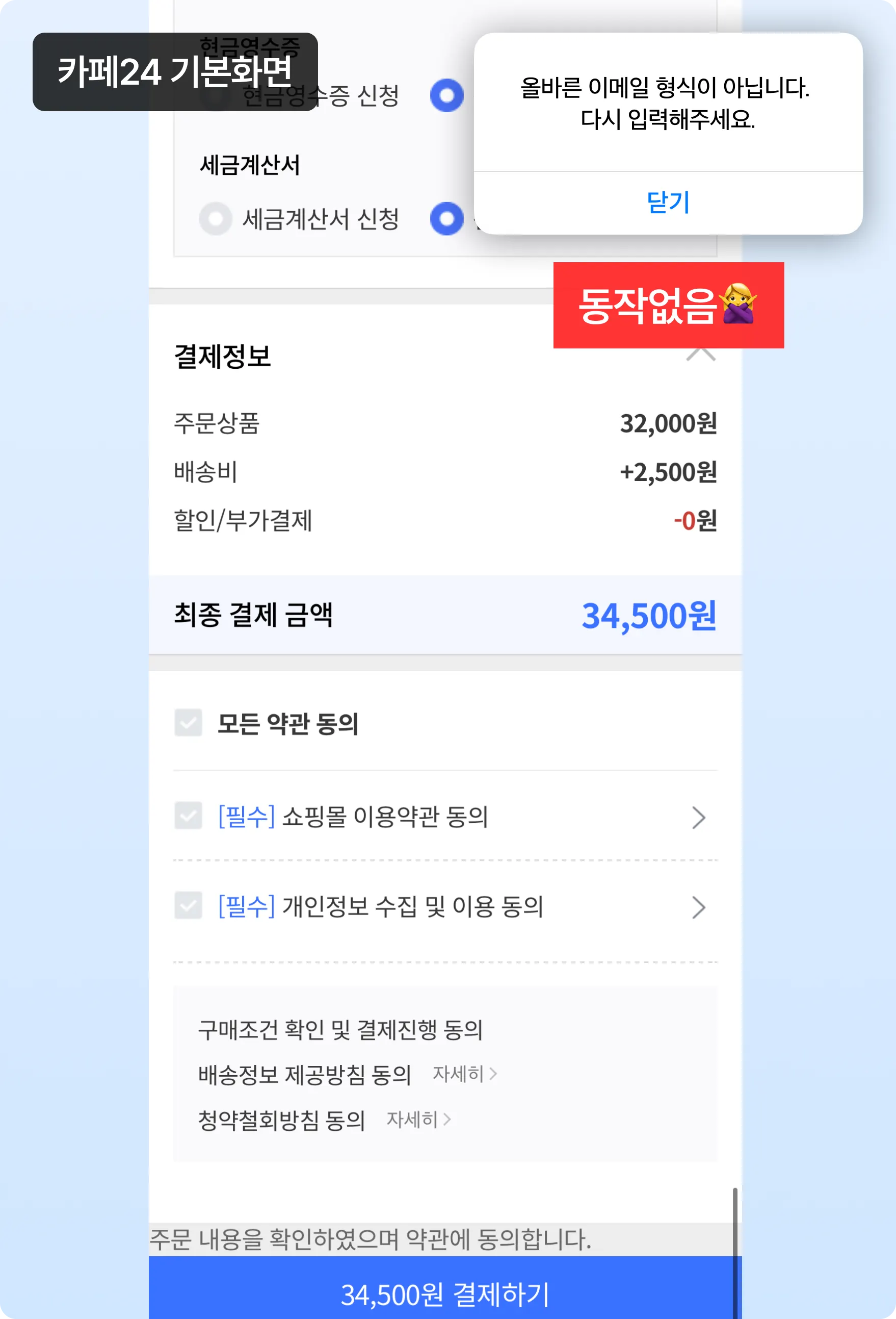 결제 버튼을 누르고나서 뜨는 다양한 알럿들, 짜증나시죠?