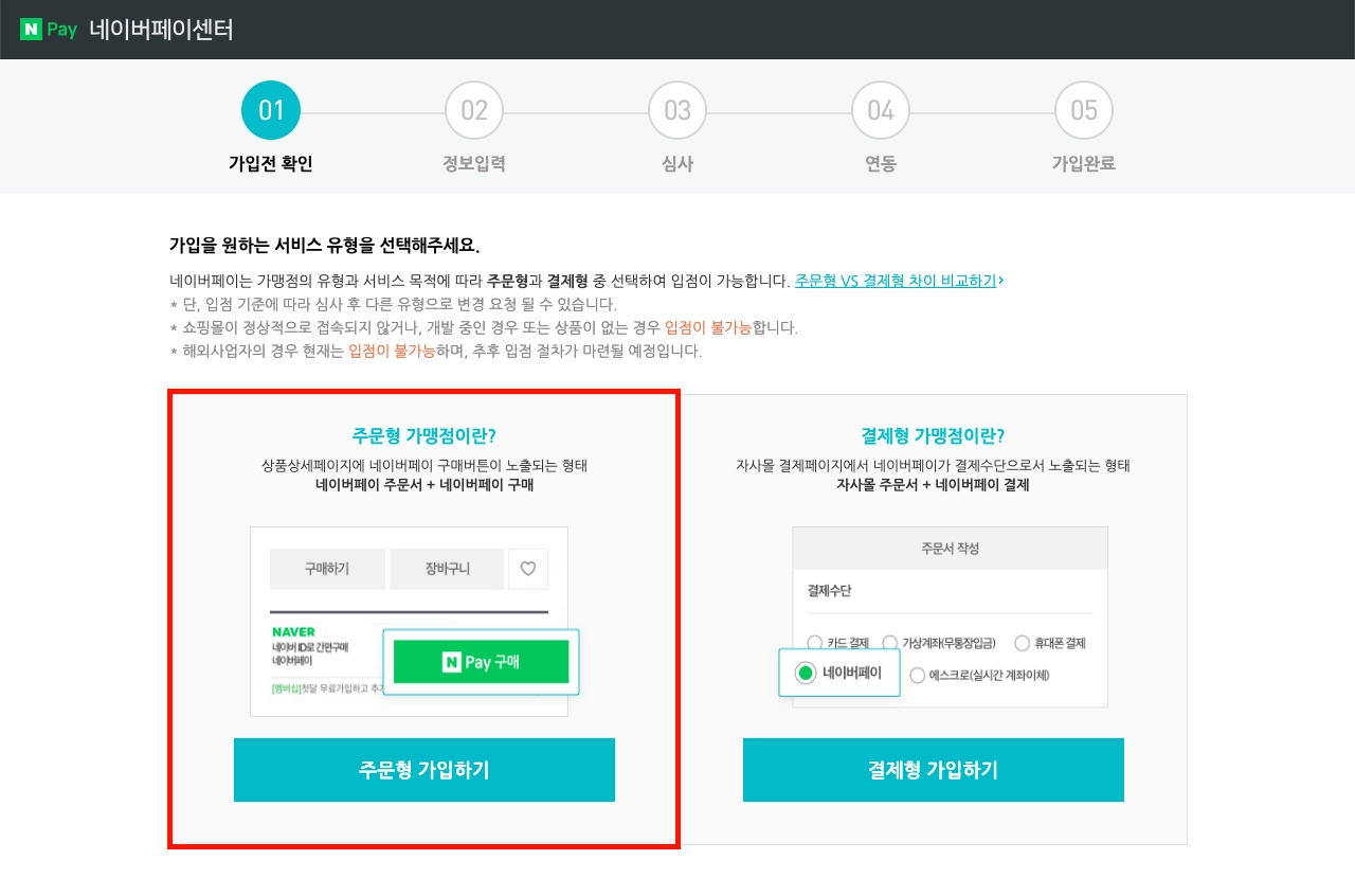 네이버페이 결제형의 경우 네이버페이 측에 직접 승인을 받아야 카페24 결제페이지 결제 수단으로 이용하실 수 있습니다.