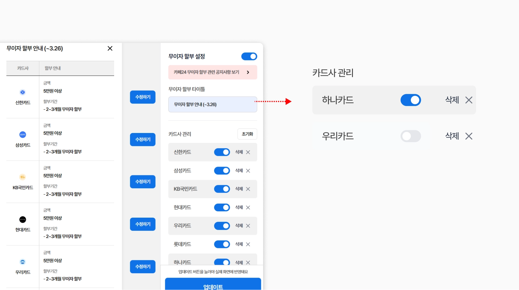카페24에서 무이자 할부는 크게 세 가지로 나뉘어요.