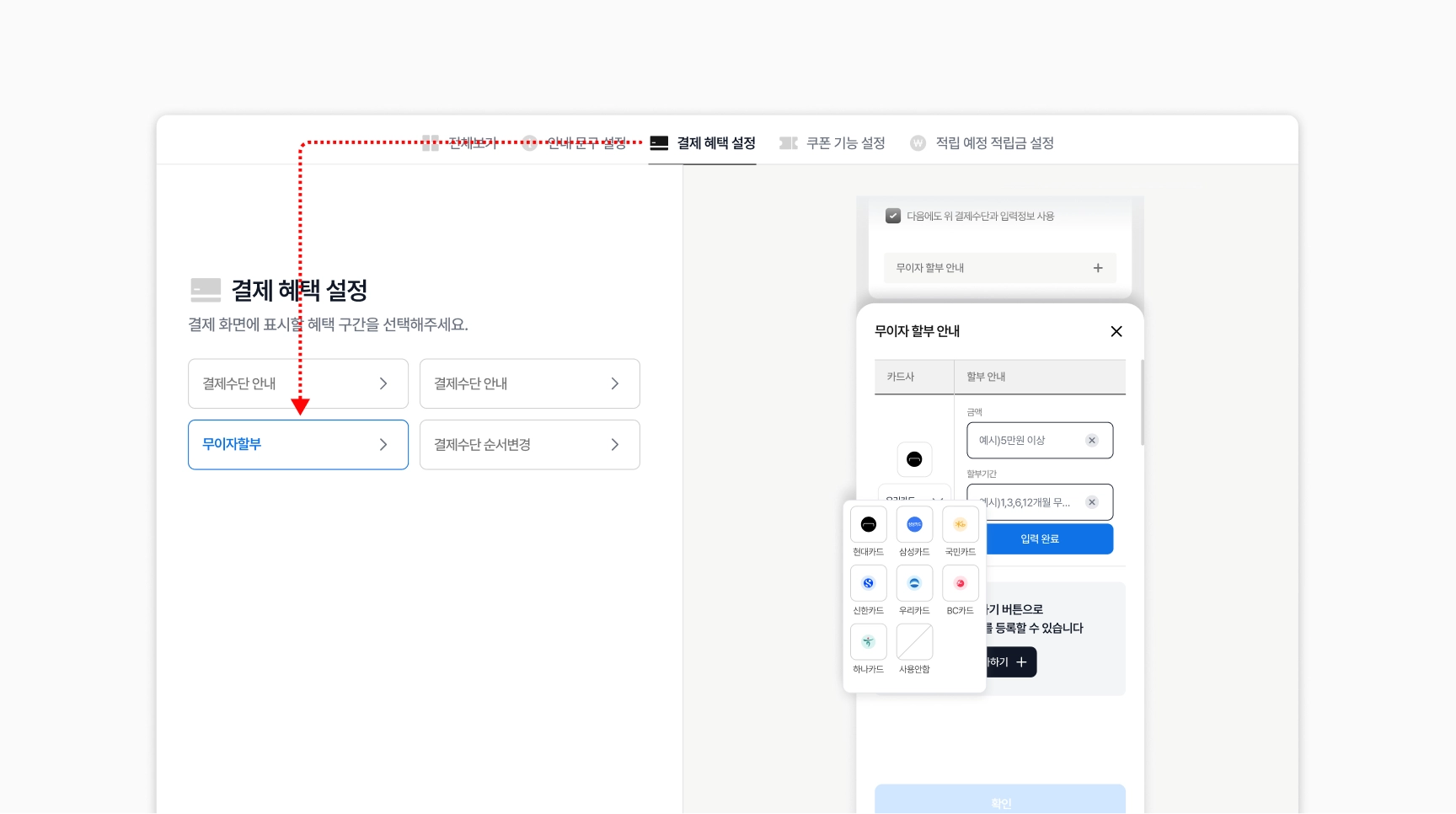 2. 무이자할부는 어떻게 설정 하나요?