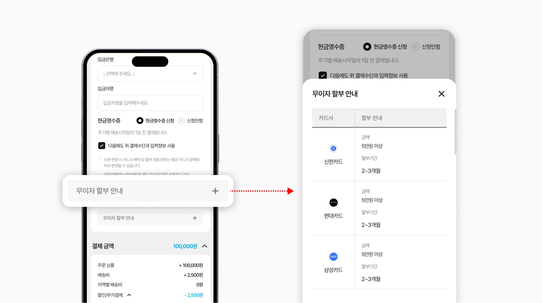 고객의 심리적 부담을 줄여주는 무이자할부 혜택을 결제페이지에서 강조해보세요.