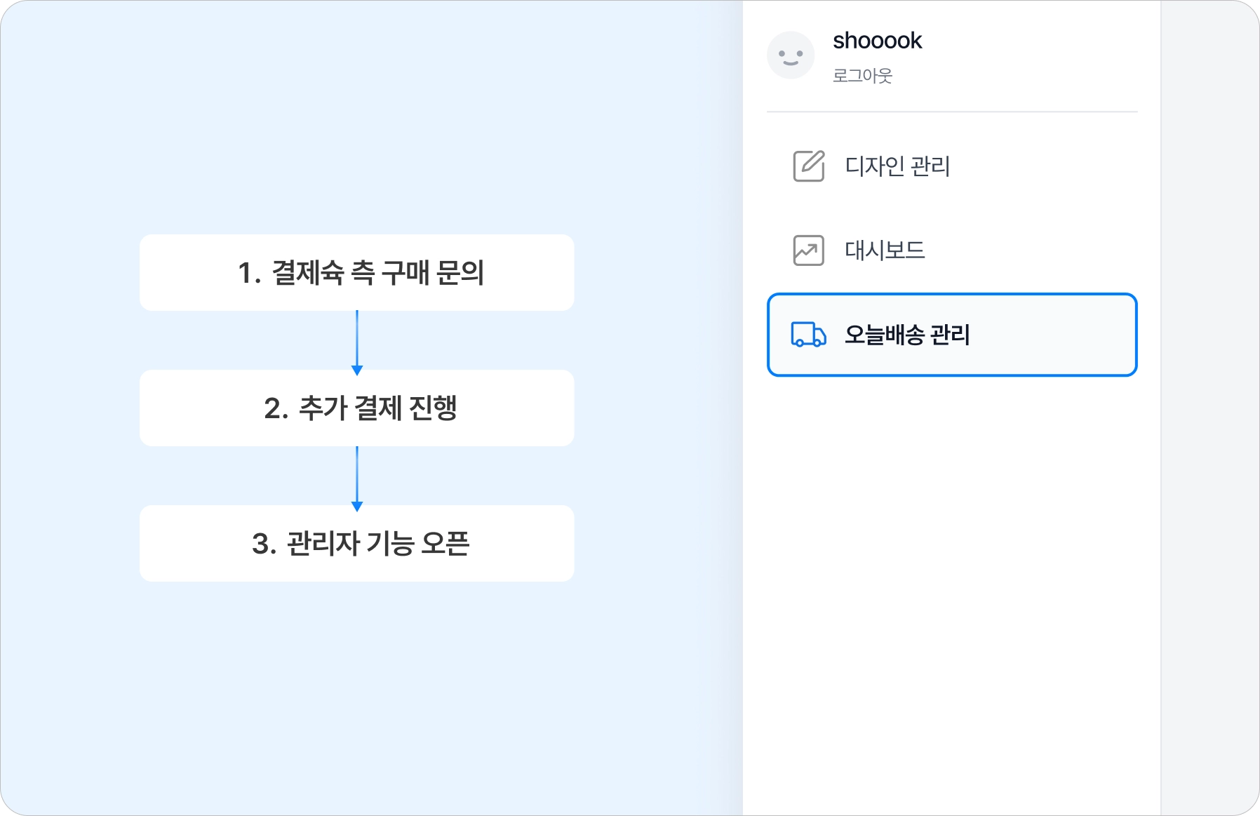 추가 결제 진행 후 결제슉 측에서 관리자 기능을 열어드려요.