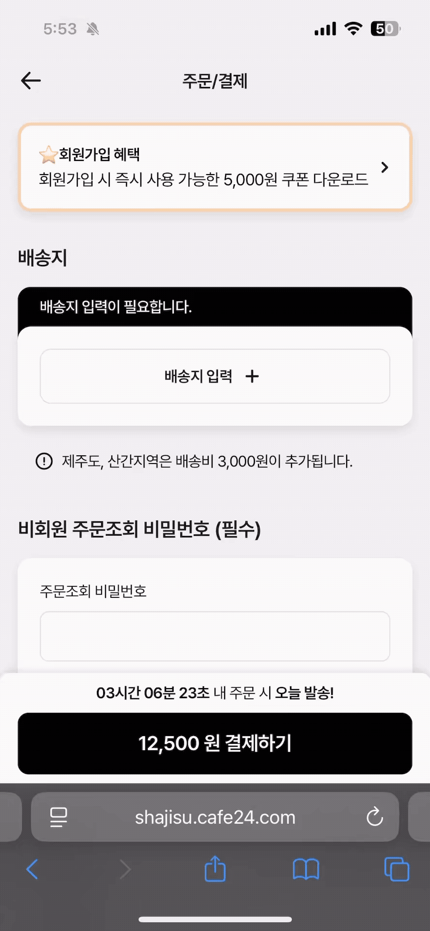 오늘배송 타이머는 결제슉 기본 기능에 포함되지 않는 추가 기능입니다.