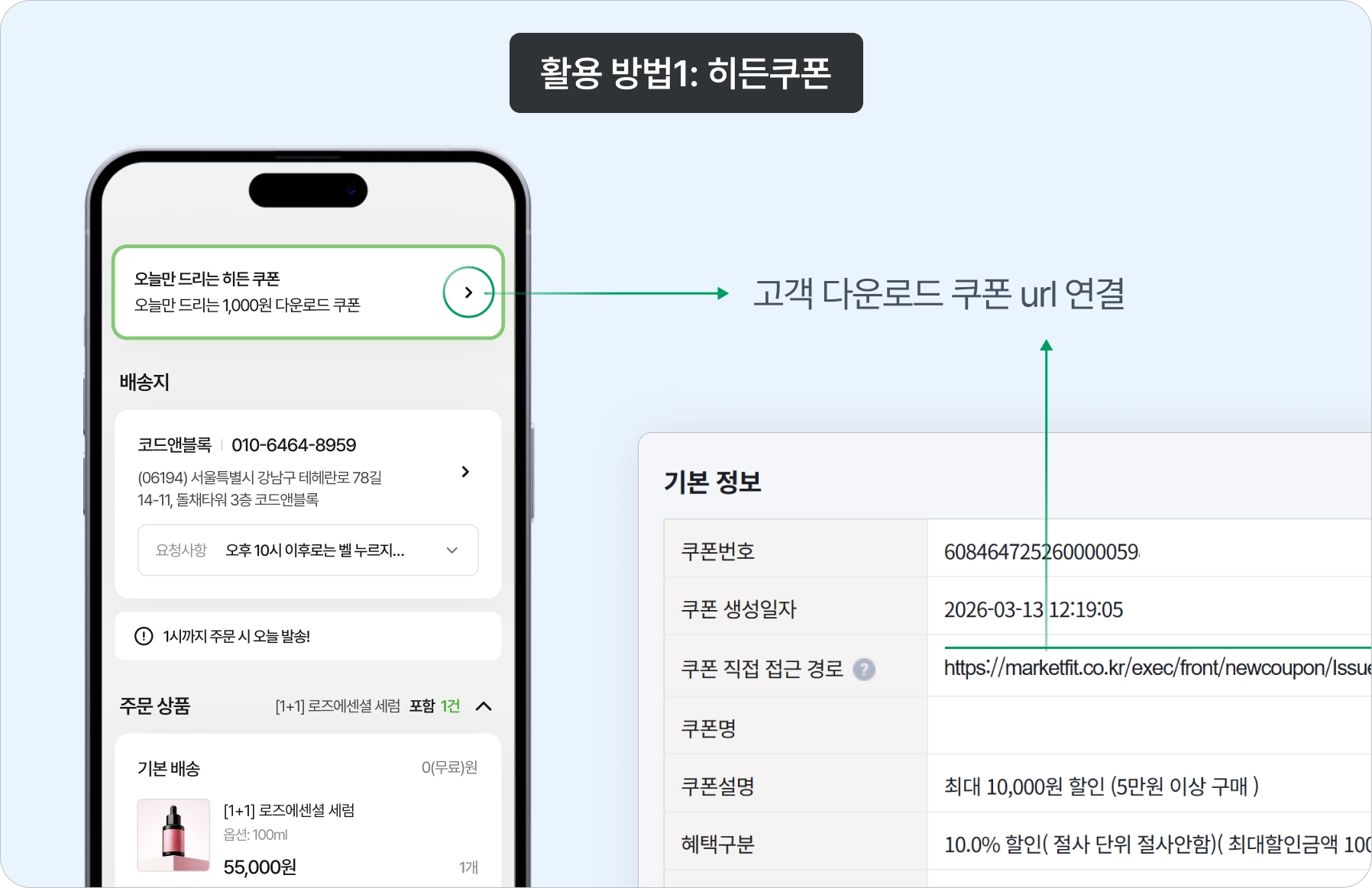 다운로드 쿠폰을 생성하여 쿠폰 페이지에서만 노출 시킬 수 있는 히든 쿠폰용으로 활용할 수 있어요.