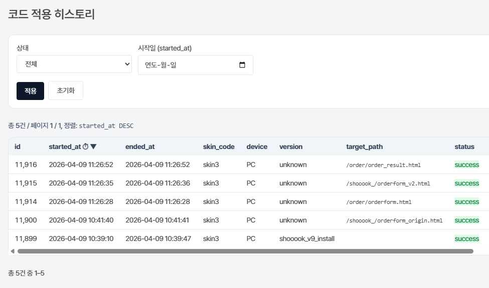 결제슉은 내부 서버에서 코드 변경 시마다 로그를 기록하고 있습니다.
